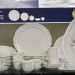 - A complete 40-piece ensemble of plates, bowls, and mugs